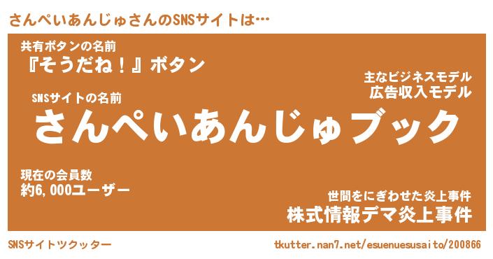 | 胡散臭い通販商品みたいなあだ名 | 『億万長者になれる霊験あらたかなお札…その名も「さんぺいあんじゅ」』 |