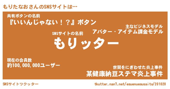 | 男性向けラノベタイトル風あだ名 | 『モリタナオアートオンライン』 |