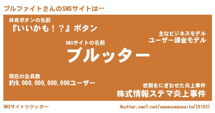 | 男性向けラノベタイトル風あだ名 | 『ブルファイトアートオンライン』 |