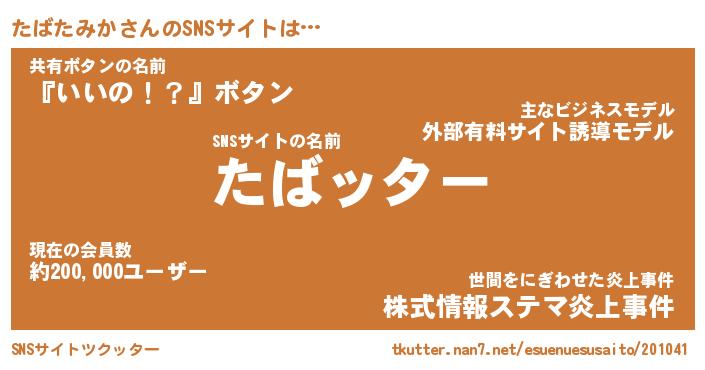 | ファンタジー風あだ名 | 『タバフェル』『エターナルタバタミカー』 |