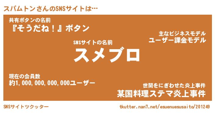 | 男性向けラノベタイトル風あだ名 | 『スパムトンアートオンライン』 |