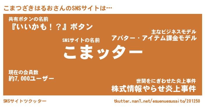 | 男性向けラノベタイトル風あだ名 | 『コマツザキハルオアートオンライン』 |