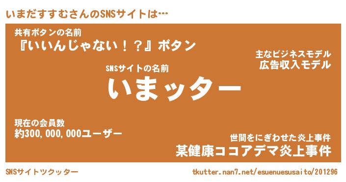 | ポケモン風あだ名 | 『イマチュウ』『イマダダネ』 |