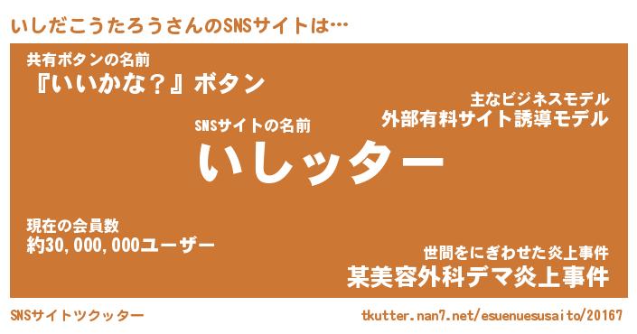 | 男性向けラノベタイトル風あだ名 | 『イシダコウタロウアートオンライン』 |