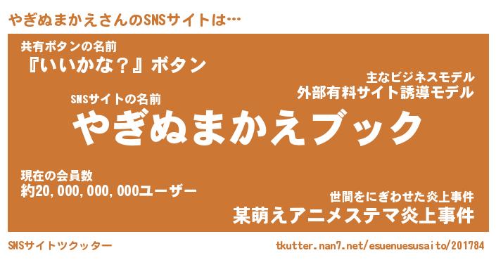 | 欧米人風あだ名 | 『マイケルやぎぬまかえ』 |