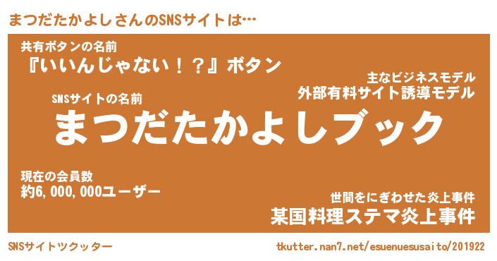 | 肩書あだ名 | 『まつだたかよし店長』 |