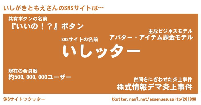 | 肩書あだ名 | 『いしがきともえ御曹司』 |