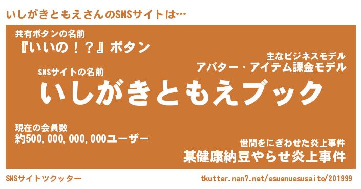 | 胡散臭い通販商品みたいなあだ名 | 『億万長者になれる霊験あらたかなお札…その名も「いしがきともえ」』 |