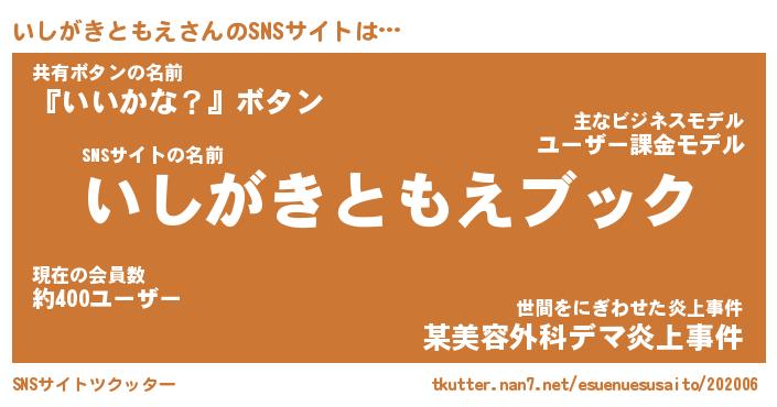 | 男性向けラノベタイトル風あだ名 | 『イシガキトモエアートオンライン』 |