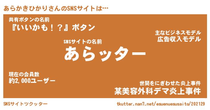 | ツイッター | あらかきひかりさんのツイッターID『fukuyoka_idle』 |