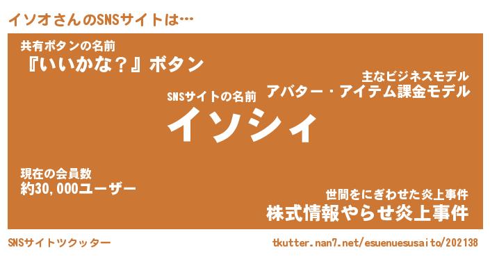 | ポケモン風あだ名 | 『イソチュウ』『イソオダネ』 |