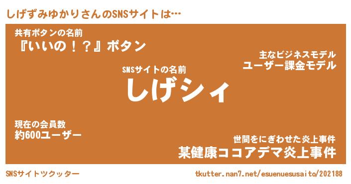 | 胡散臭い通販商品みたいなあだ名 | 『必ず成功する霊験あらたかなお札…その名も「しげずみゆかり」』 |