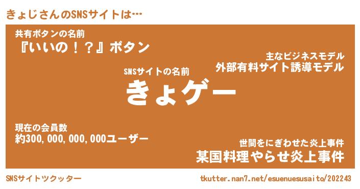| ファンタジー風あだ名 | 『キョフェル』『エターナルキョジー』 |