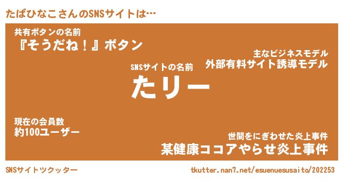 | 肩書あだ名 | 『たばひなこCEO』『たばひなこ大統領』 |
