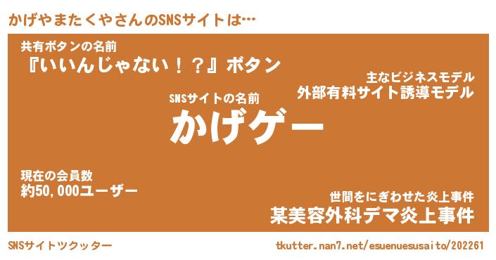 | 肩書あだ名 | 『かげやまたくや社長』 |