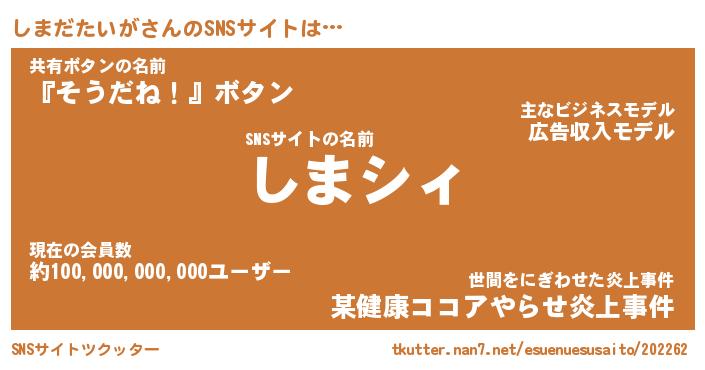 | ヘコむあだ名 | 『しまにゅー』『酢こんぶ』 |