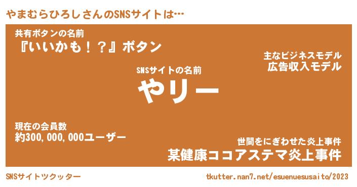 | 肩書あだ名 | 『やまむらひろし社長』 |