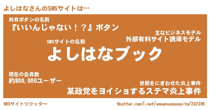 | 胡散臭い通販商品みたいなあだ名 | 『億万長者になれる霊験あらたかなお札…その名も「よしはな」』 |