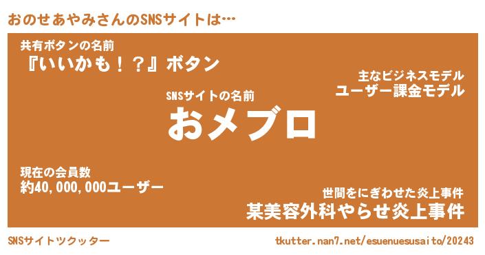| 欧米人風あだ名 | 『マイケルおのせあやみ』 |