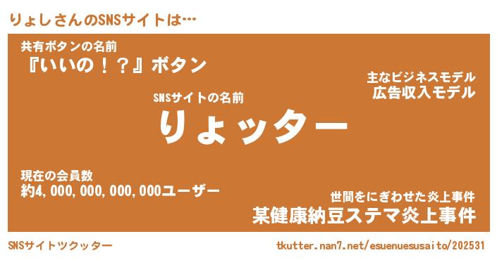 | ファンタジー風あだ名 | 『リョフェル』『エターナルリョシー』 |