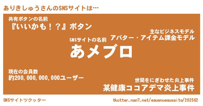 | 肩書あだ名 | 『ありきしゅう店長』『ありきしゅう塾長』 |