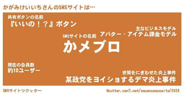 | 胡散臭い通販商品みたいなあだ名 | 『モテモテ間違いなし霊験あらたかなお札…その名も「かがみけいいち」』 |