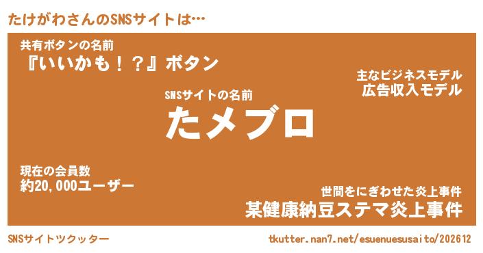 | 意味不明あだ名 | 『ペロリンたけがわ』『永久保存たけがわ』 |