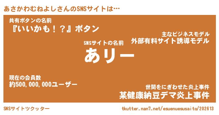 | ヘコむあだ名 | 『あさにゅー』『なまこ酢』 |