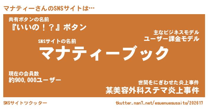 | 男性向けラノベタイトル風あだ名 | 『マナティーアートオンライン』 |