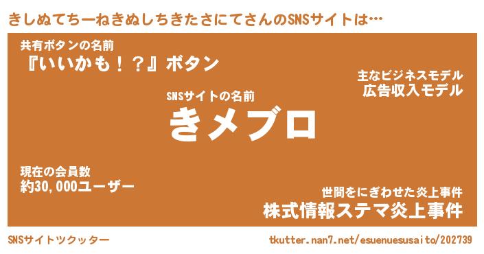 | 料理風あだ名 | 『節約★きしぬてちーねきぬしちきたさにてと油揚げの玉子丼』 |