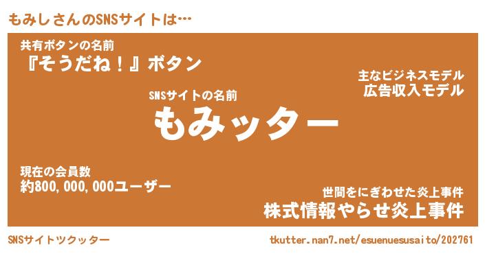| 肩書あだ名 | 『もみし社長』『もみし大統領』 |