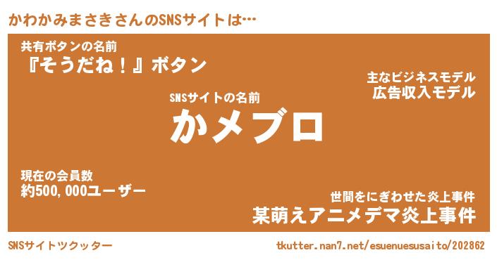 | 肩書あだ名 | 『かわかみまさき御曹司』 |
