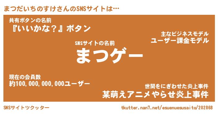 | 伝説のあだ名 | 『伝説のスナイパーまつだいちのすけ』 |