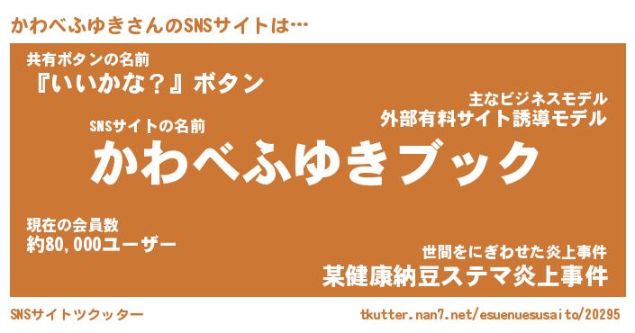 | 肩書あだ名 | 『かわべふゆきCEO』『かわべふゆき団長』 |