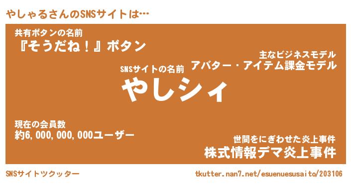 | ヘコむあだ名 | 『やしにー』『豆乳』『やしっちょ』 |