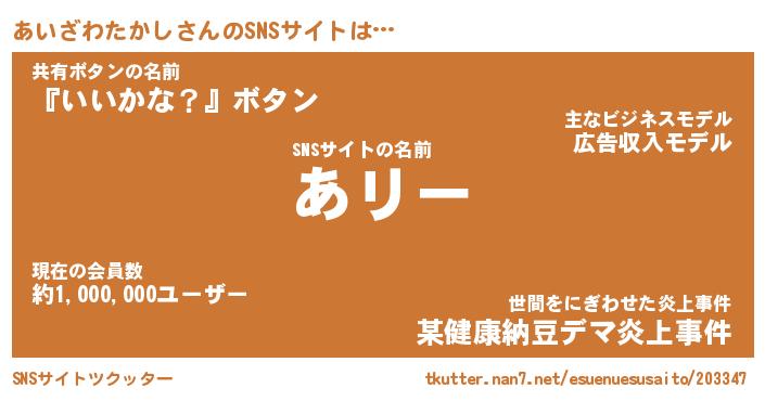 | 胡散臭い通販商品みたいなあだ名 | 『モテモテ間違いなし霊験あらたかなお札…その名も「あいざわたかし」』 |
