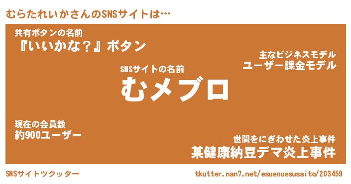 | 男性向けラノベタイトル風あだ名 | 『ムラタレイカアートオンライン』 |