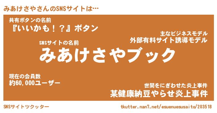 | 胡散臭い通販商品みたいなあだ名 | 『億万長者になれるブレスレット…その名も「みあけさや」』 |