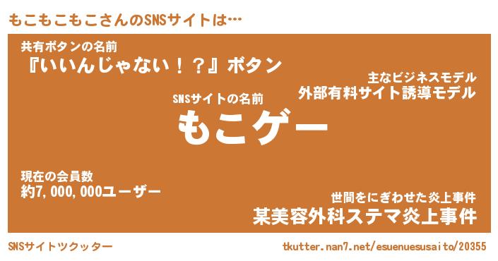 | ヘコむあだ名 | 『もこにー』『豆乳』『もこ太郎』 |