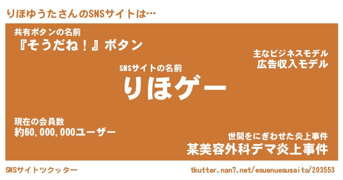 | 伝説のあだ名 | 『伝説のスナイパーりほゆうた』 |
