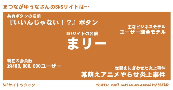 | 男性向けラノベタイトル風あだ名 | 『まつながゆうなの憂鬱』 |