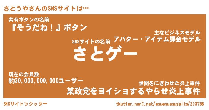| 肩書あだ名 | 『さとうや店長』『さとうや国家主席』 |