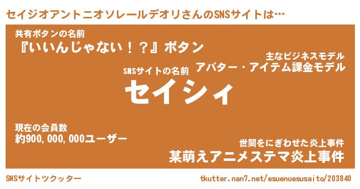 | ツイッター | セイジオアントニオソレールデオリさんのツイッターID『konnyaku_star』 |