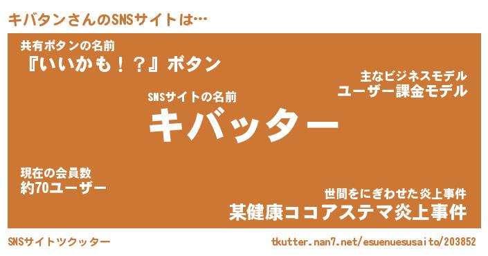 | 意味不明あだ名 | 『ペロリンキバタン』『永久保存キバタン』 |