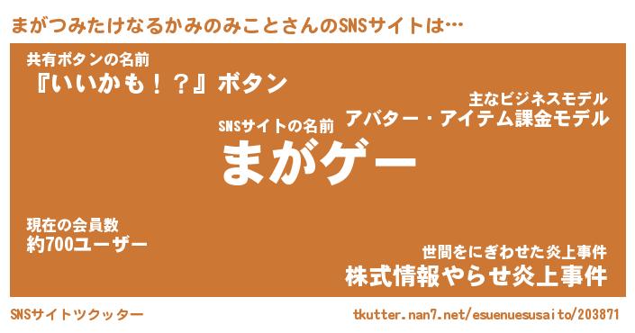 | 肩書あだ名 | 『まがつみたけなるかみのみこと社長』 |