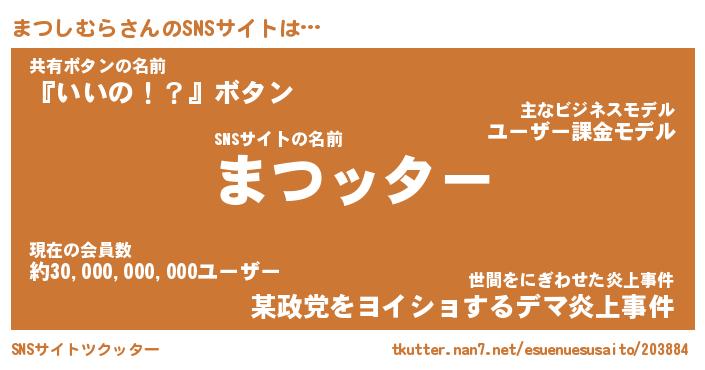 | 男性向けラノベタイトル風あだ名 | 『マツシムラアートオンライン』 |