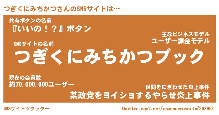 | 肩書あだ名 | 『つぎくにみちかつCEO』 |