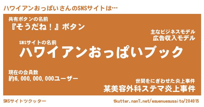 | 肩書あだ名 | 『ハワイアンおっぱい社長』 |