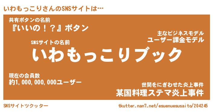 | 男性向けラノベタイトル風あだ名 | 『イワモッコリアートオンライン』 |