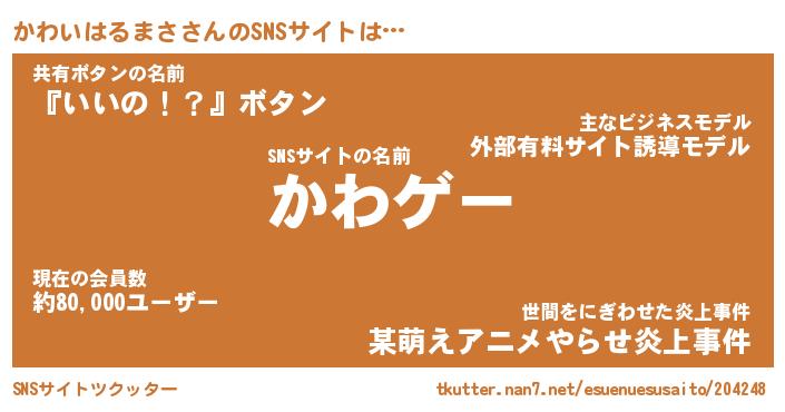 | 胡散臭い通販商品みたいなあだ名 | 『必ず成功する霊験あらたかなお札…その名も「かわいはるまさ」』 |
